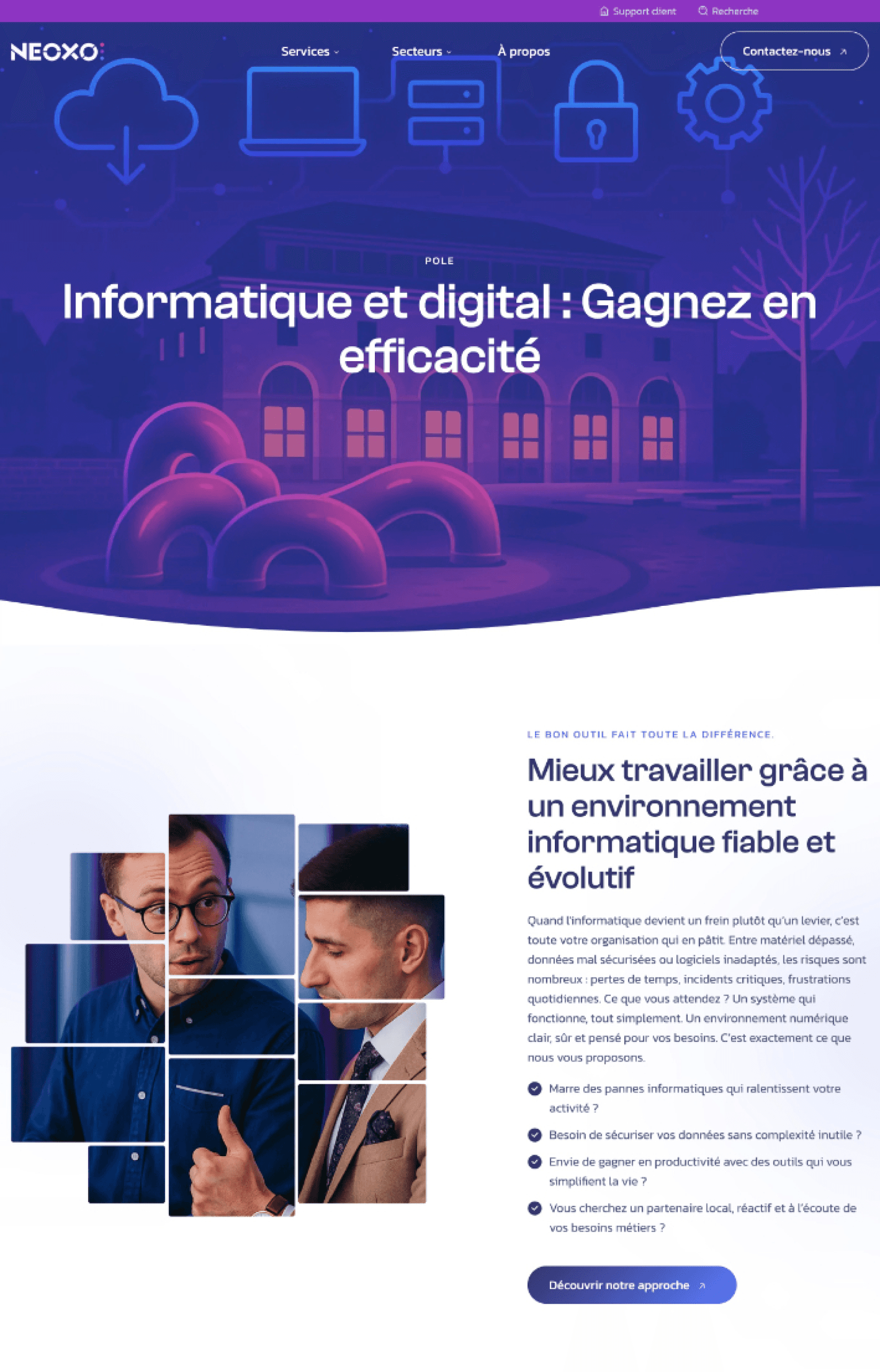 Nous avons d’abord orchestré la naissance de NEOXO : d'une refonte d'identité visuelle moderne à la création d'un écosystème web complet (site et blog expert).